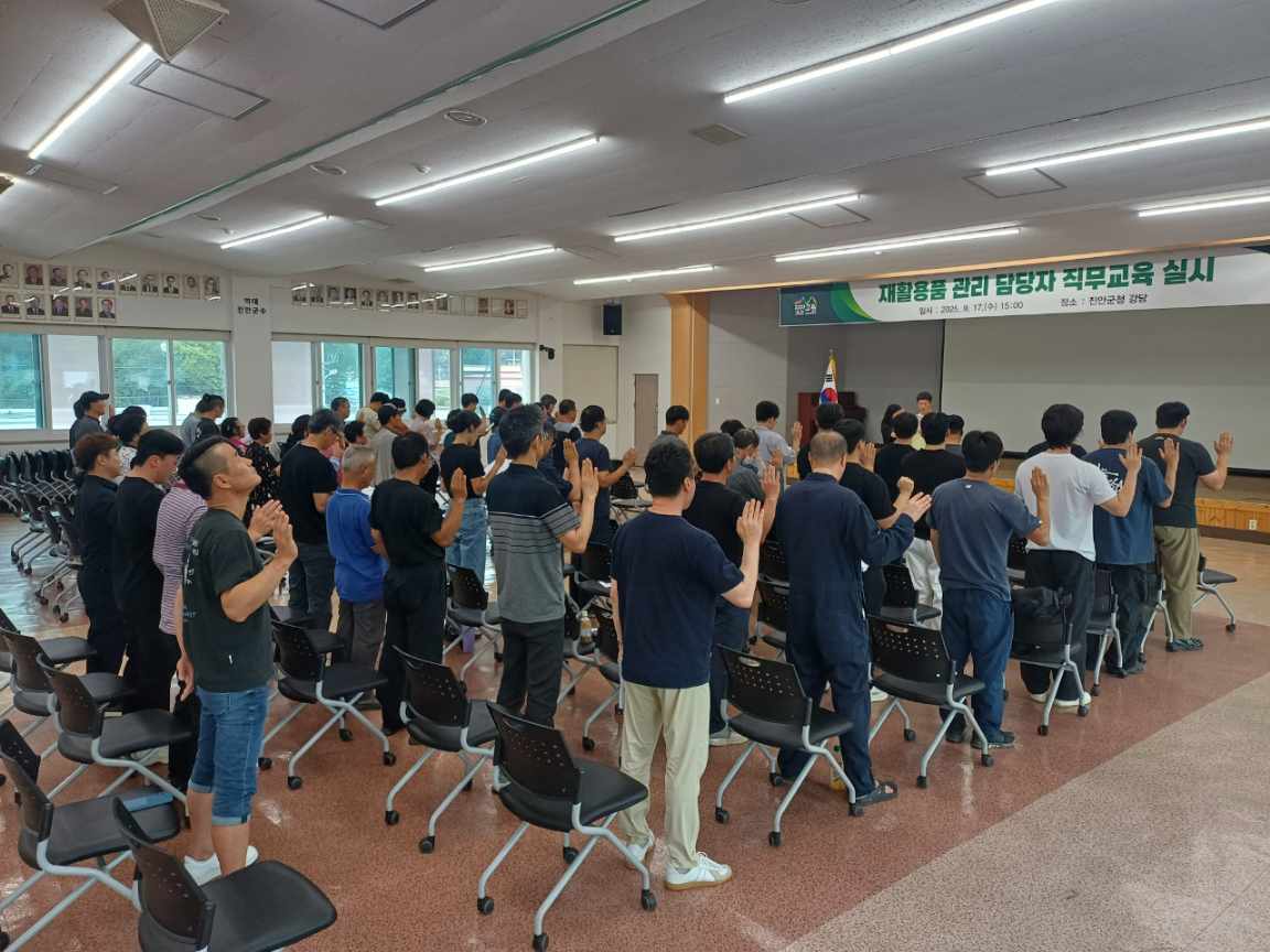 이번 교육은 지난 17일 군청 강당에서 열렸으며 재활용품 관리 담당자들의 재활용 가능 자원의 사적 유용방지를 위한 사전 예방 교육으로 진행됐다.