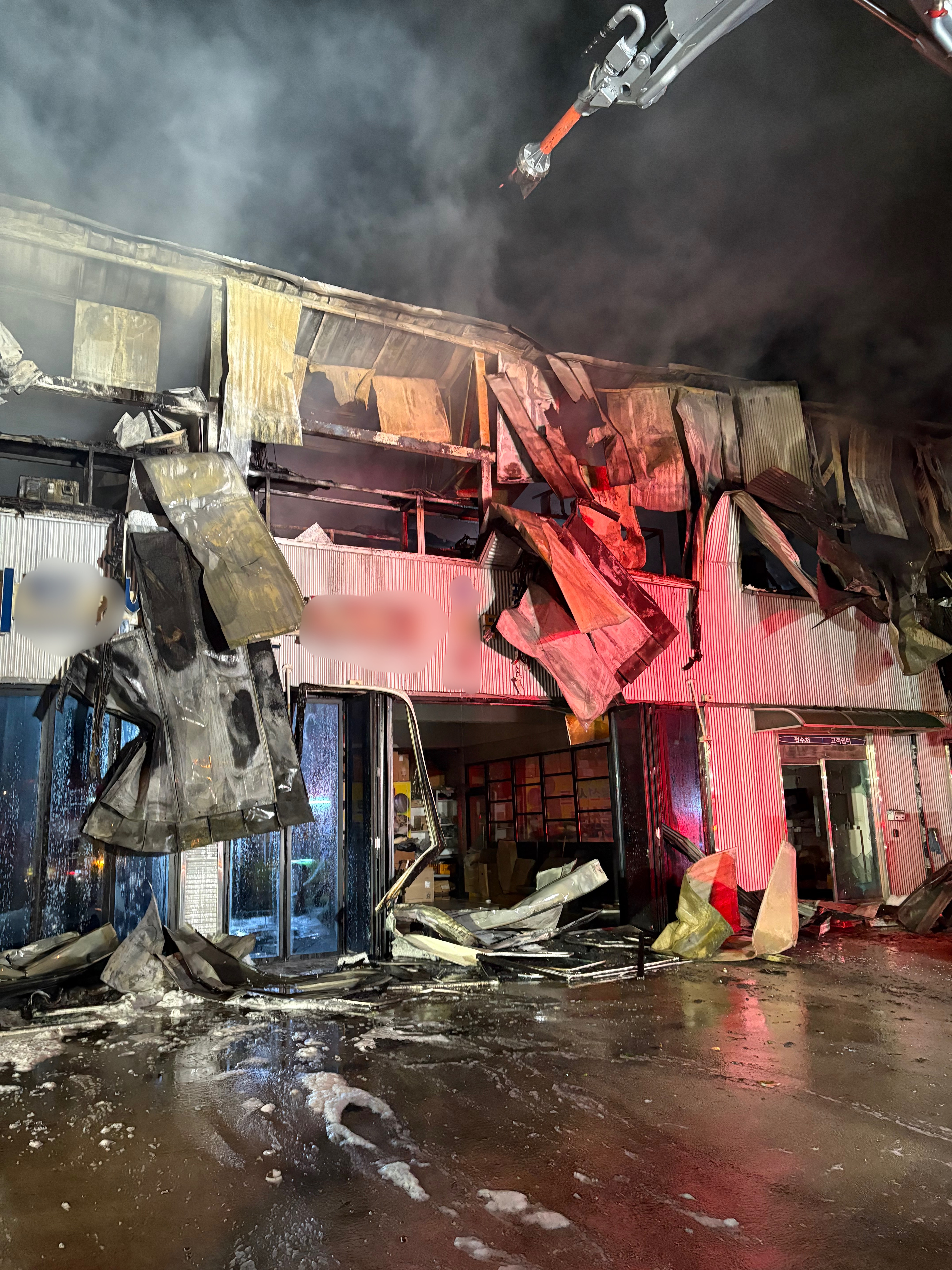 현장에 도착한 무인파괴방수차는 오후 11시 17분부터 가동돼 건물 외벽을 뚫고 2층 내부로 소화용수를 직접 분사했다. 이어 2층의 넓은 면적으로 불길이 쉽게 잡히지 않자, 천장을 뚫어 위쪽에서 방수 통로를 확보하고 내부 연기를 외부로 배출하는 작업을 병행해 소방대원의 안전과 진압 여건을 확보했다.