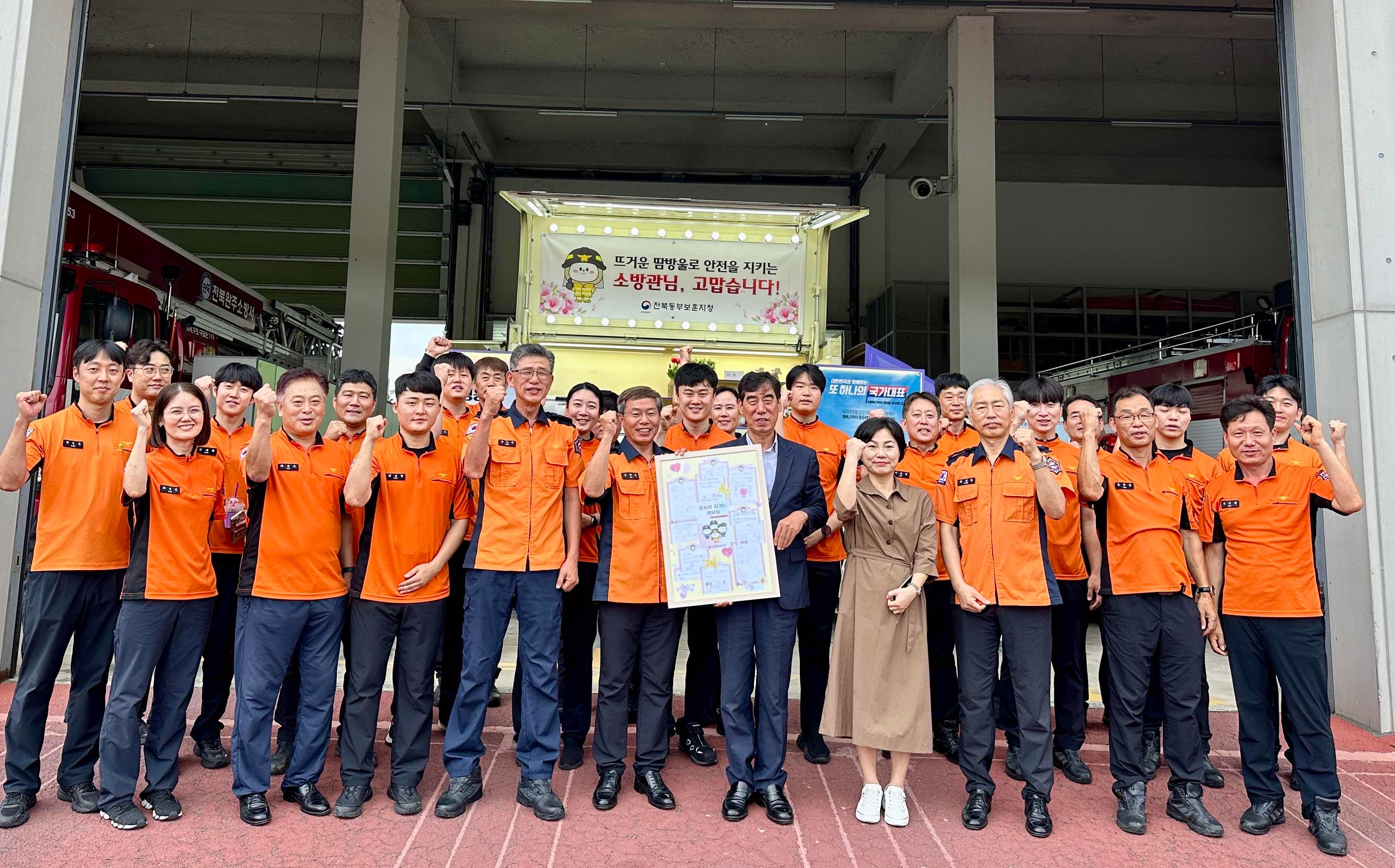 이번 행사는 각종 재난 현장에서 도민의 생명과 안전을 지키기 위해 헌신하는 소방공무원들의 노고에 감사하고, 직원들에게 휴식과 소통·화합의 시간을 제공하기 위해 마련됐다. 전북동부보훈지청은 음료와 간식을 무료로 제공했으며, 이날 완주소방서 ‘체력단련의 날 행사’와 함께 진행돼 큰 호응을 얻었다.