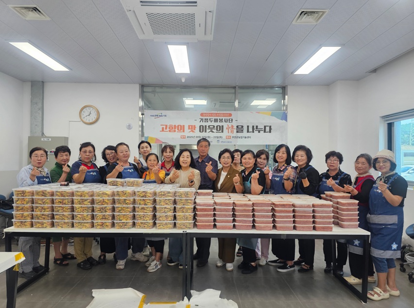 기쁨두배봉사단은 지난 9월 23일 농업기술센터 조리실에서 추석 명절을 앞두고 오색꼬치전과 생채를 직접 만들어 지역의 어르신들께 전달하였다.
