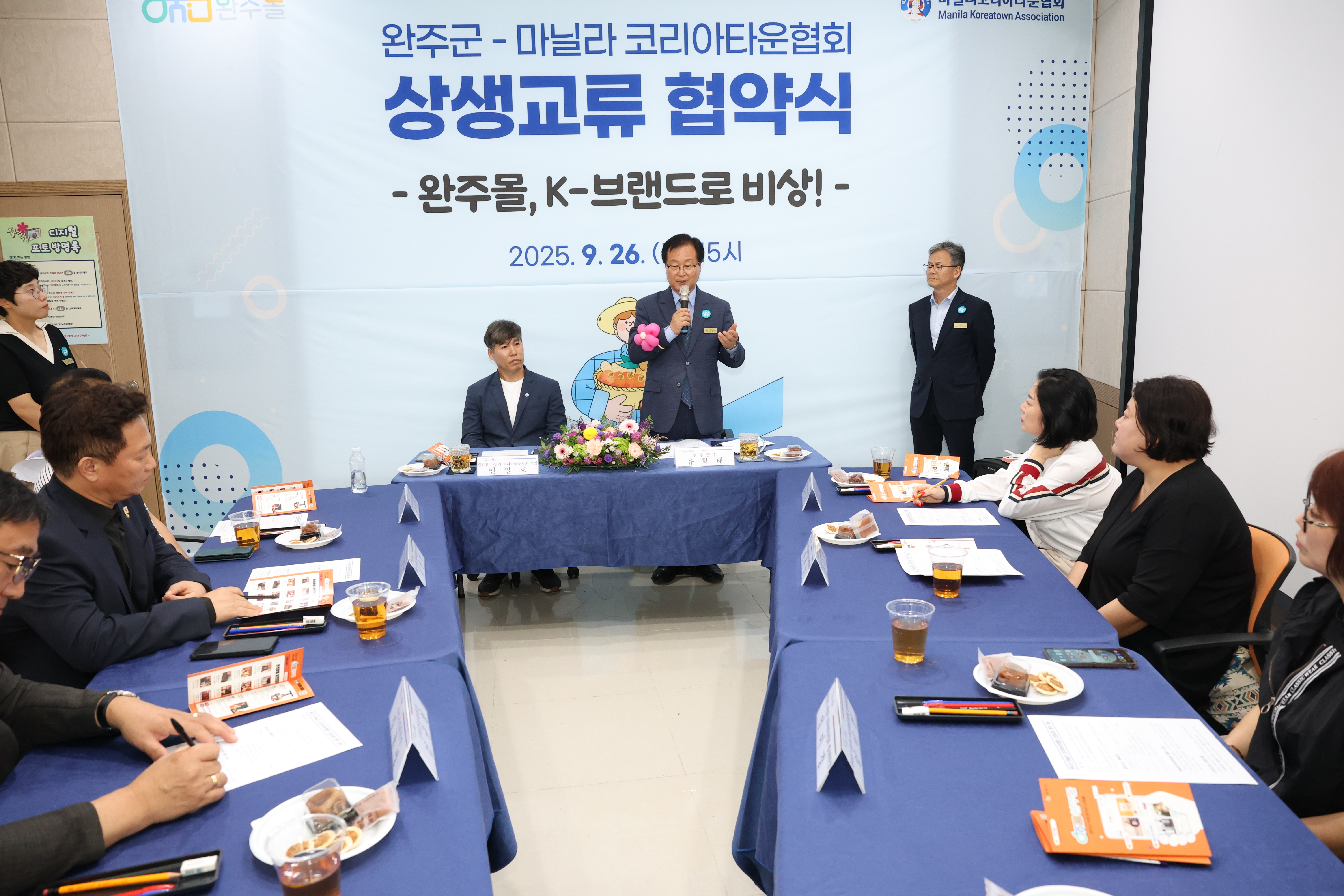 이번 협약은 완주군이 운영하는 온라인 쇼핑몰 ‘완주몰’의 해외 홍보와 판로 확대를 도모하고, 필리핀 현지 한국 교민 사회와의 교류를 통해 문화·경제적 상생 발전을 이루기 위해 추진됐다.