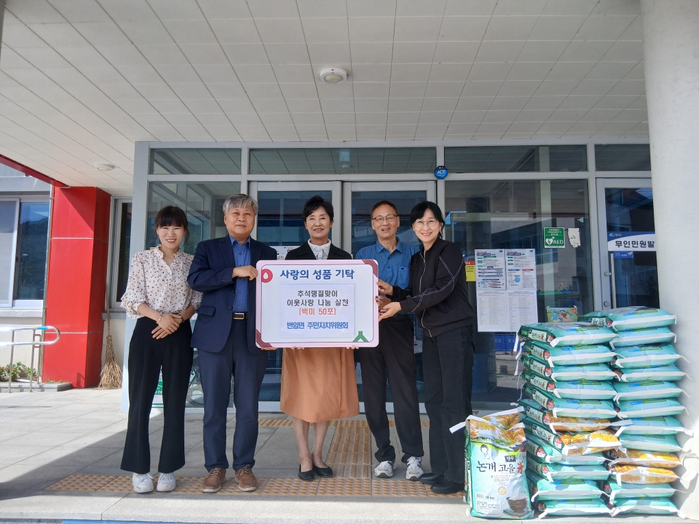 김성은 면장은 “명절마다 잊지 않고 이웃사랑을 실천해 주시는 주민자치위원회에 깊이 감사드린다”며 “기탁된 성품은 도움이 절실한 가정에 소중히 전달해 훈훈한 명절을 보낼 수 있도록 하겠다”고 밝혔다.