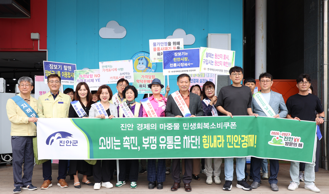 [진안=뉴전북] 진안군(군수 전춘성)은 2일 추석 명절을 앞두고 진안고원시장에서 공직자와 유관기관 관계자들이 함께 참여한 가운데 전통시장 장보기 행사와 민생회복 소비쿠폰 사용 촉진 캠페인을 실시했다.