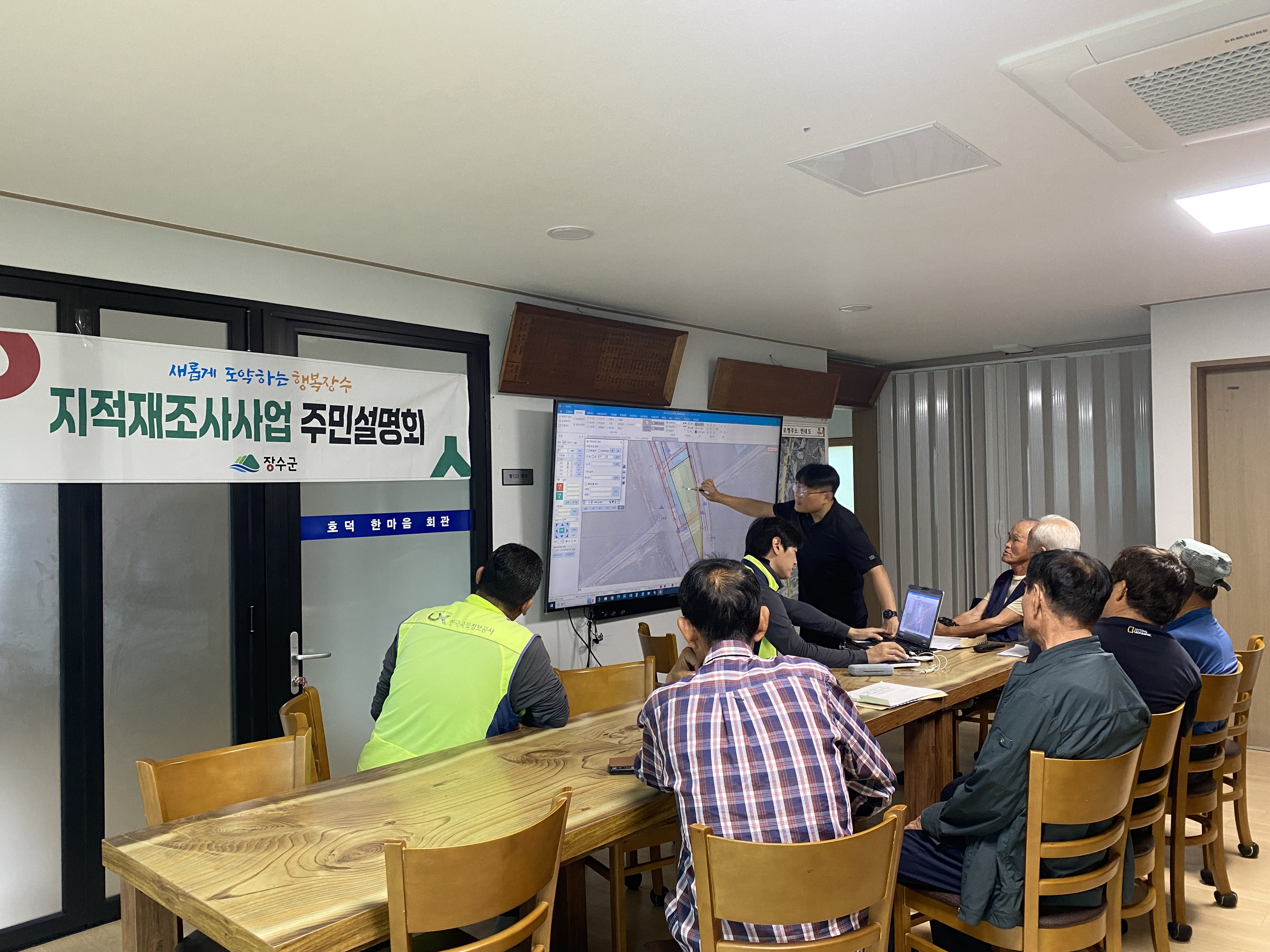 이번 설명회에서는 장수군과 책임수행기관인 한국국토정보공사(LX)가 사전에 실시한 측량 결과를 바탕으로 경계 결정 사항과 절차를 상세히 설명하고 주민 의견을 수렴하는 시간을 가졌다.