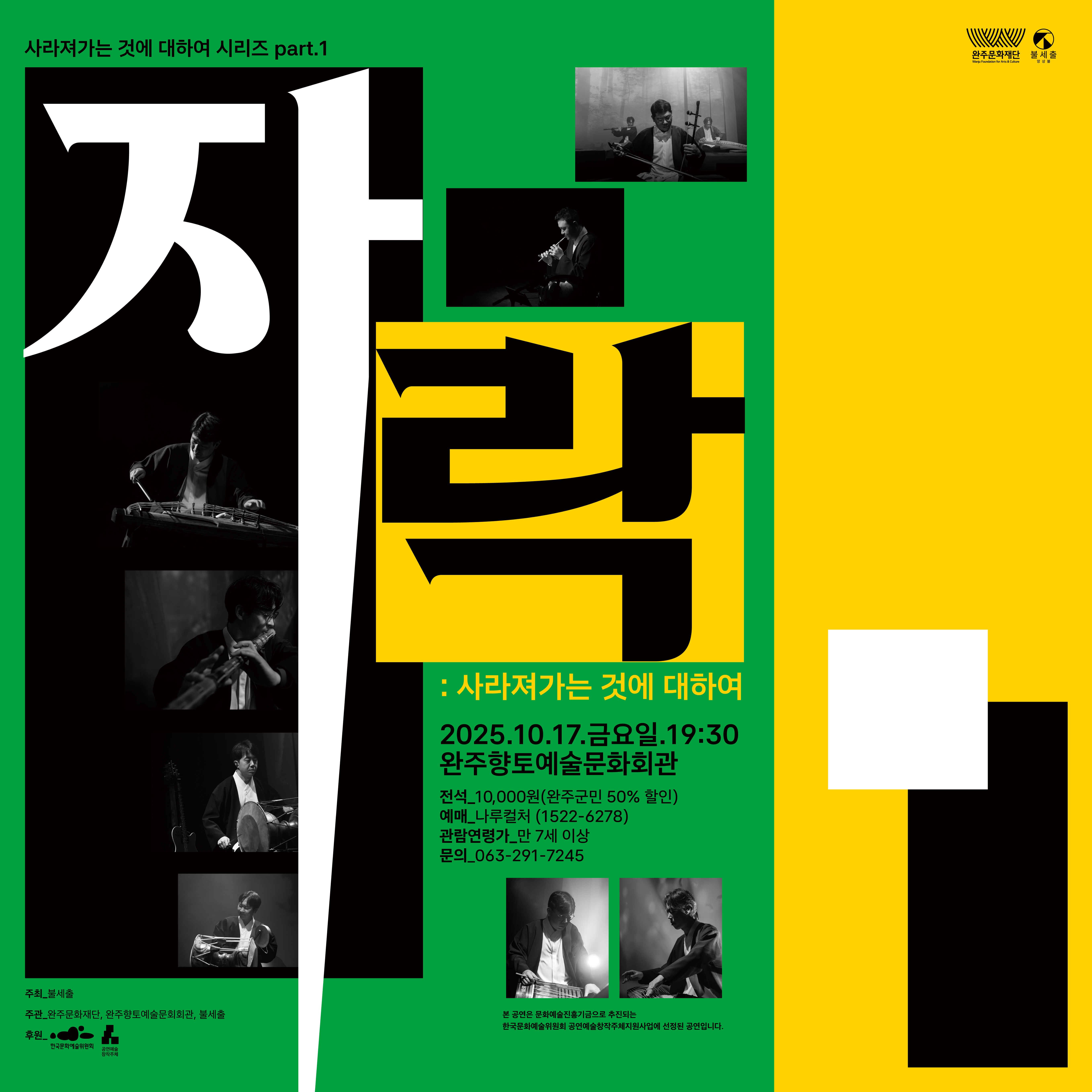 완주향토예술문화회관에서 열릴 '자락: 사라져가는 것에 대하여'는 고즈넉한 가을밤, 전통의 미학과 현대 기술의 조화 속에서 새로운 감동을 선사할 것이다. 이 특별한 음악의 여정에 많은 참여를 기대한다.