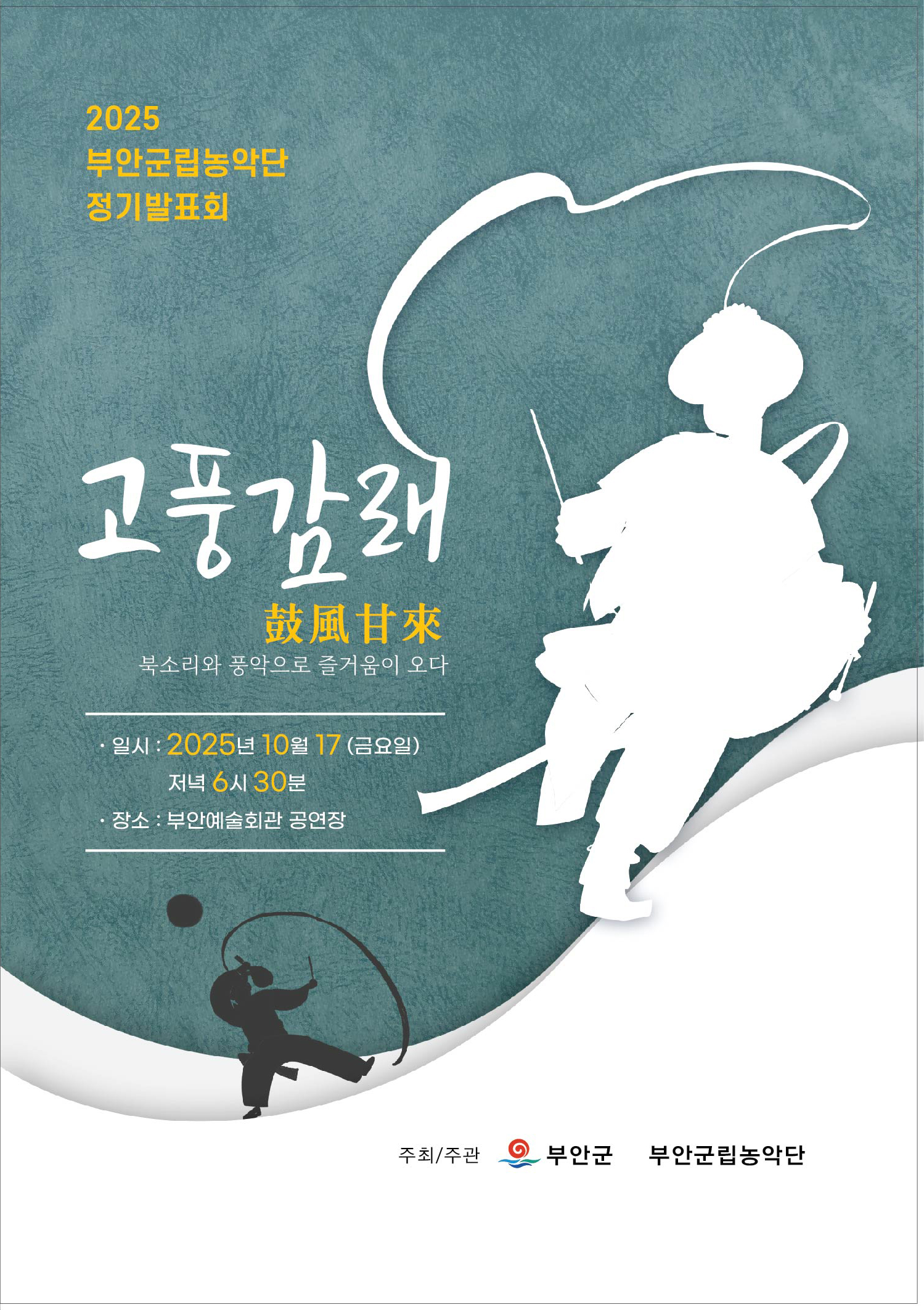 이번 공연은 고풍감래(鼓風甘來)”, 북소리와 풍악으로 즐거움이 찾아온다라는 주제로, 한 해 동안 갈고닦은 부안 군립 농악단의 예술성과 기량을 선보이는 무대이다.