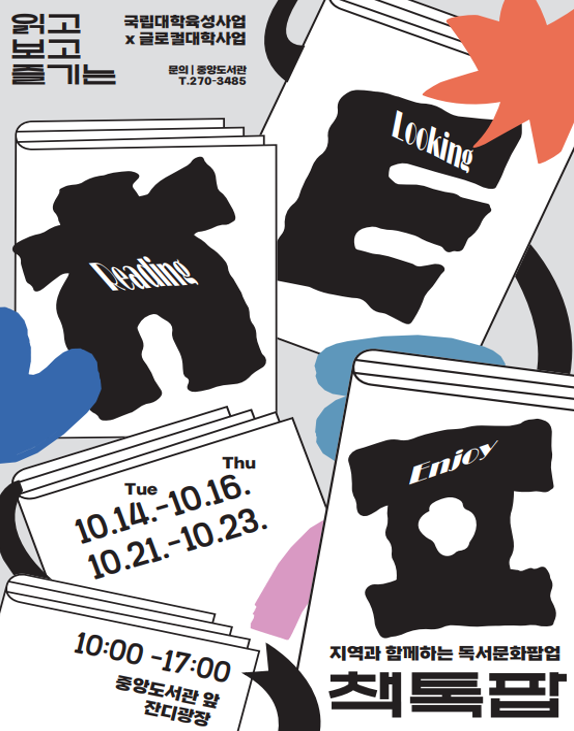 • - 오는 10월 14일부터 23일까지 중앙도서관 앞 잔디광장에서 진행, 대학, 지역민- 책을 매개로 소통‧ 문화 공유하는 열린 독서문화 플랫폼 마련