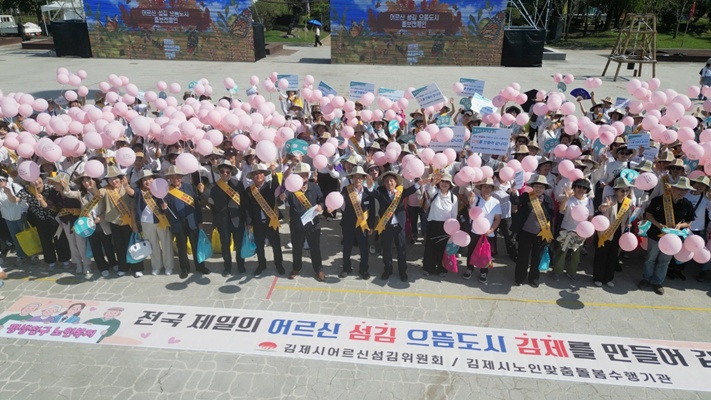 [김제=뉴전북]김제시(시장 정성주)는 김제시어르신섬김위원회가 제27회 김제지평선축제를 맞아 지난 10일, 노인맞춤돌봄서비스 수행기관 3개소(김제노인복지센터, 김제노인종합복지관, 성암노인복지센터) 250여명의 종사자들과 함께 ‘어르신이 행복한 도시 김제’를 만들어가기 위한 캠페인을 진행했다고 밝혔다.