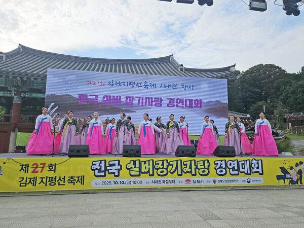 [임실=뉴전북] 전북 임실군북부권노인복지관 실버스타 청춘민요봉사단은 지난 10월 10일에 진행되었던 제27회 김제지평선 축제 ‘2025년 전국 실버장기자랑 경연대회’에 참여하여 우수상을 수상했다.