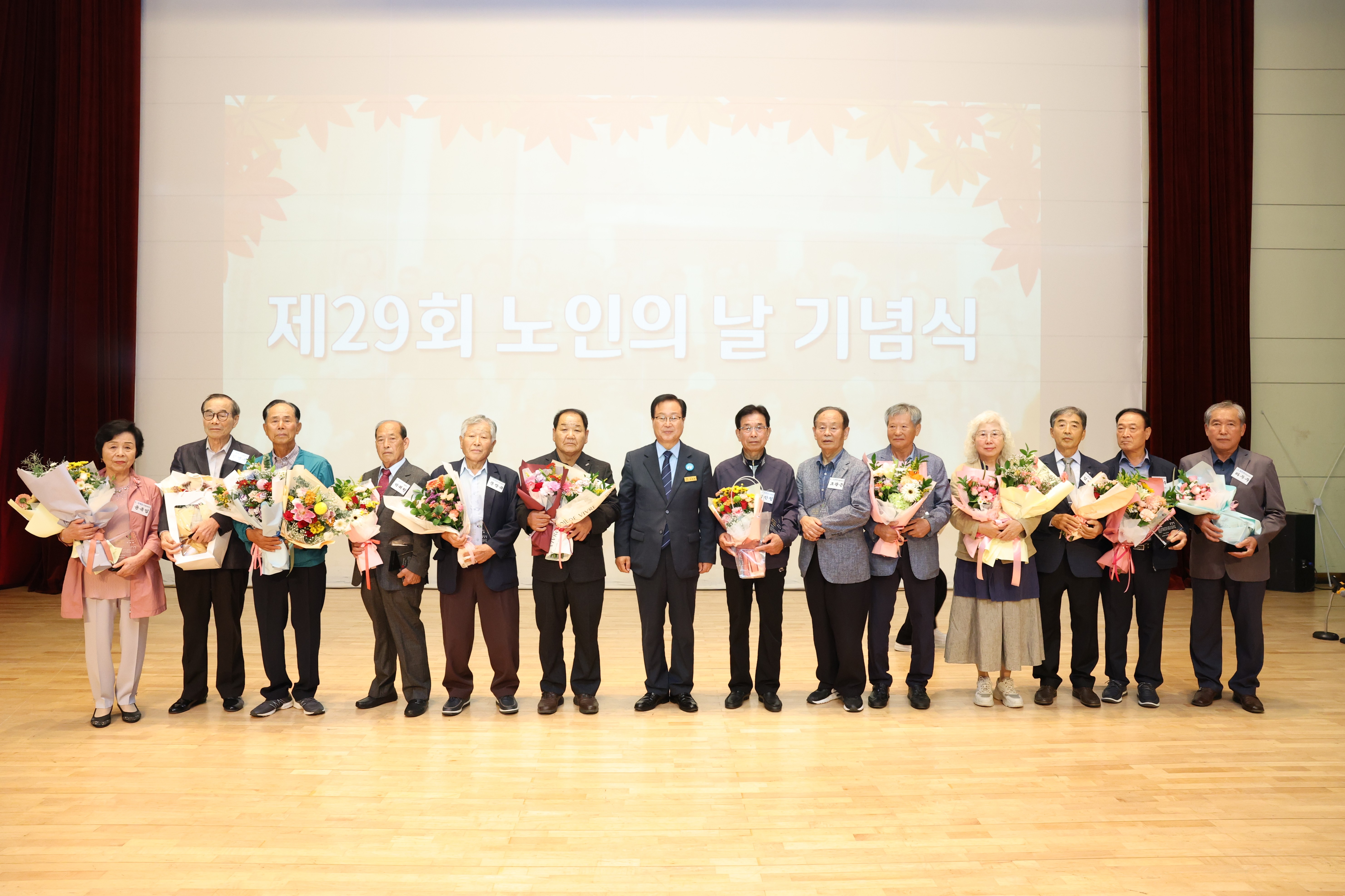 이어진 본 행사에서는 노인 권익 신장과 복지 증진에 기여한 유공자들을 격려하는 시상식이 진행돼 ▲군수표창 14명 ▲의장상 2명 ▲중앙회장상 3명 ▲지회장상 15명 등 총 34명이 공로를 인정받았다.