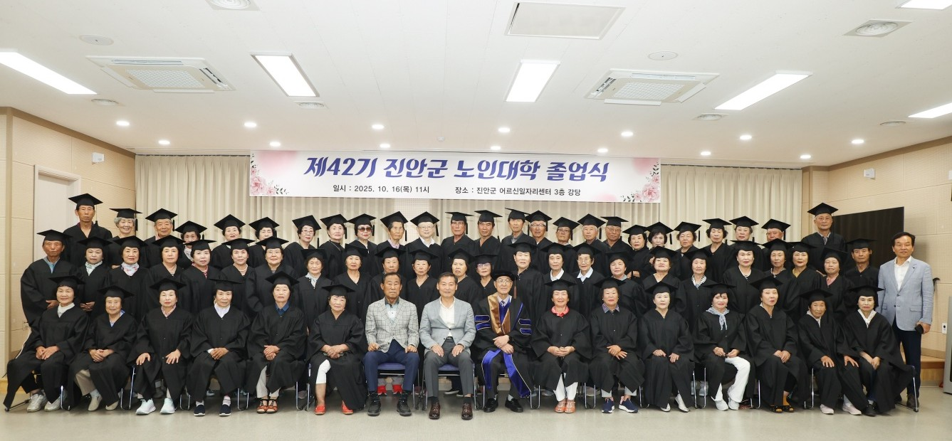 졸업식에서는 대학생 70명에게 수료증을 수여하며 모범 학생 표창으로 ▲군수상 이한진(남 77세), 박종국(남 76세), ▲진안군의회의장 이옥임(여 78세), 곽옥선(여 63세) ▲진안군노인회장상 김영애(여 86세), 황양례(여 86세) ▲대학장상 유영종(남 77세), 이전자(여 84세) ▲감사패 곽경자 진안군여성자원활동센터 회장이 수상의 영예를 안았다.