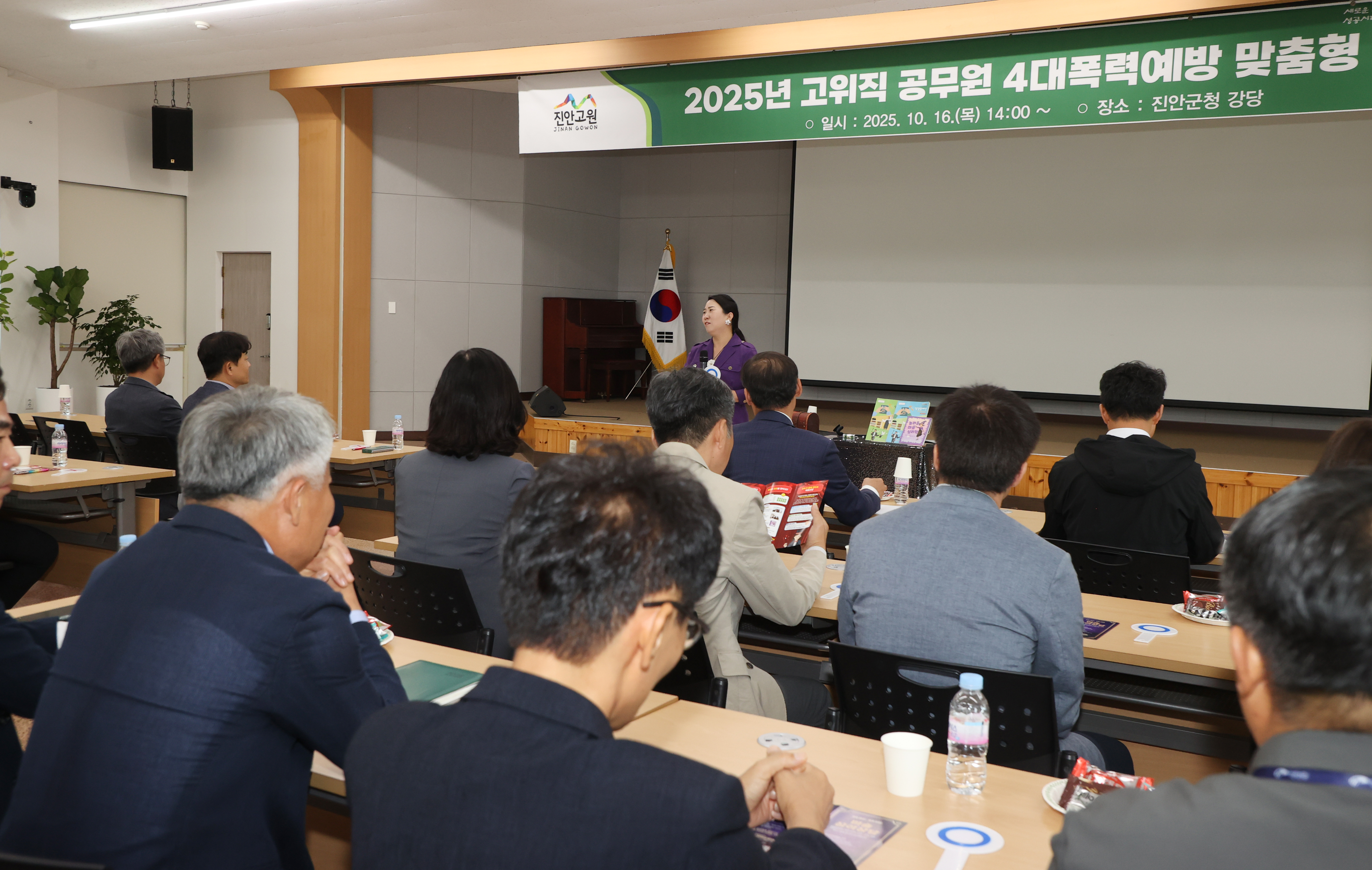 [진안=뉴전북] 진안군(군수 전춘성)은 지난 16일 군청 강당에서 고위직 공무원을 대상으로 4대 폭력(성희롱·성폭력·성매매·가정폭력) 예방교육을 실시했다.