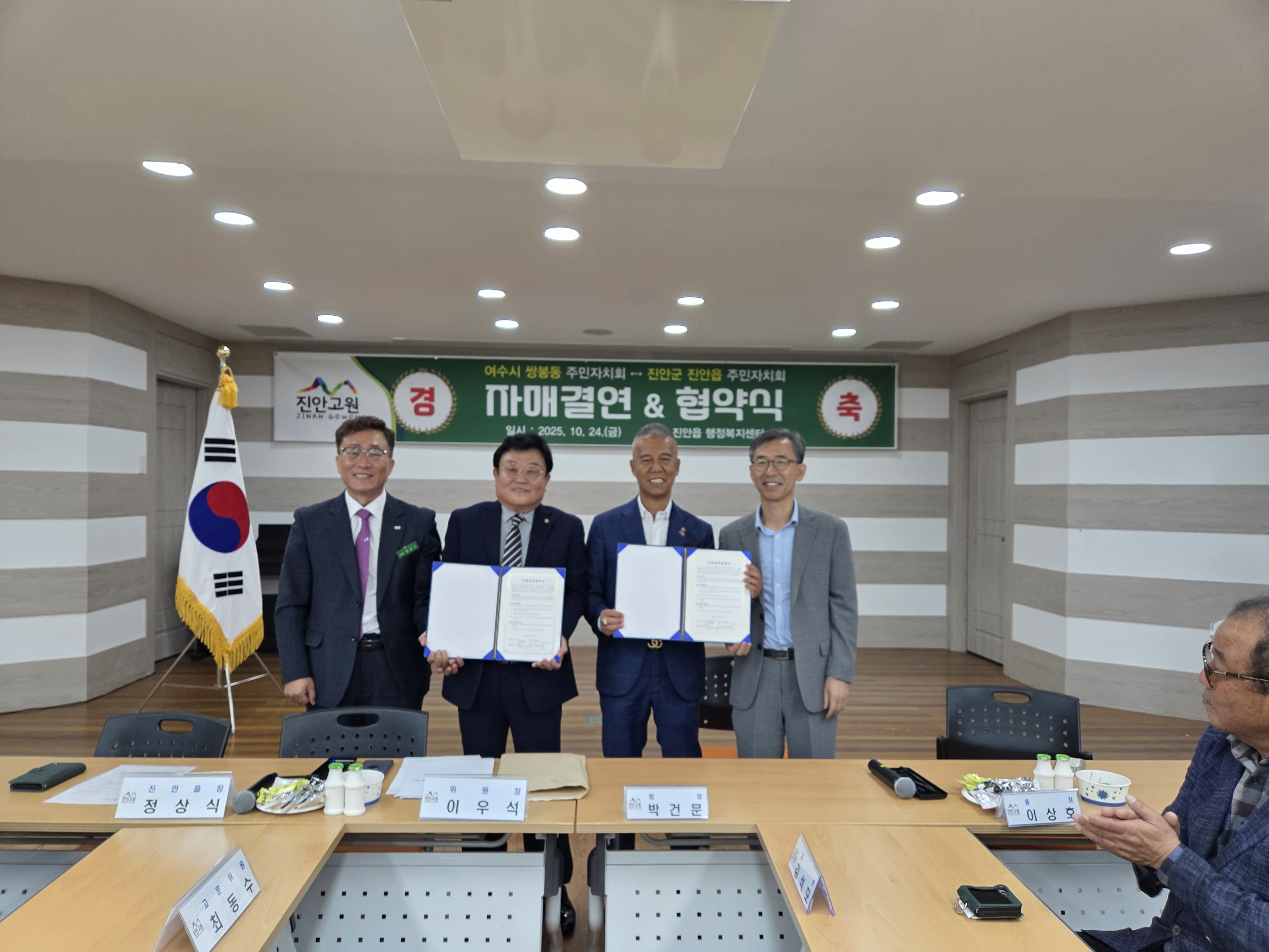 행사의 첫 순서는 진안읍과 여수시 쌍봉동 주민자치회 간 자매결연식으로 양 자치회는 상호 교류와 협력, 우호 증진을 약속하며 농촌·도시 간 상생 발전을 다짐했다.