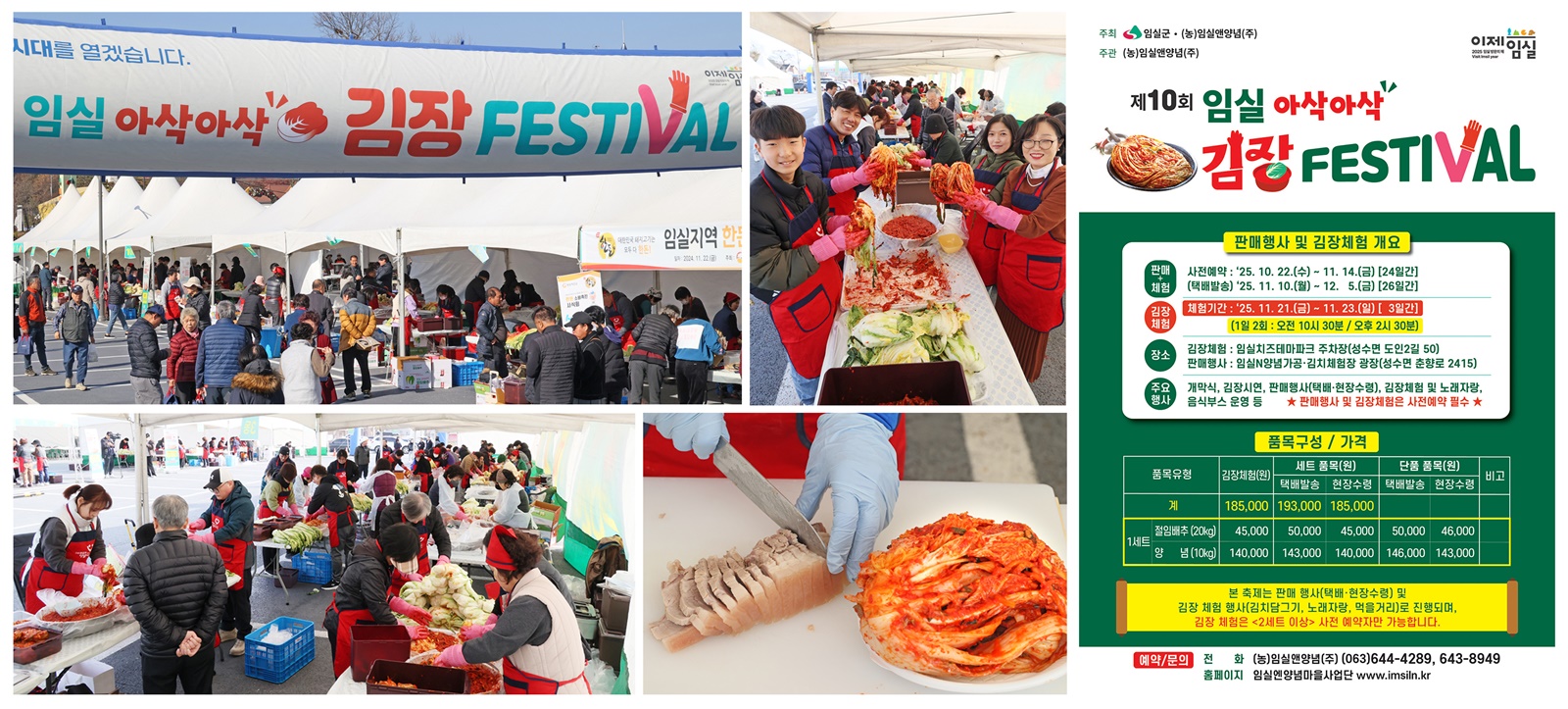 임실 아삭아삭 김장페스티벌은 해를 거듭할수록 높은 매출을 기록하고 있는데, 청정 임실에서 자란 배추와 고추만을 엄선한 김장 재료를 각 가정에서 입맛에 맞게 버무리기만 하면 김장 고민을 간단하게 해결할 수 있어 가족, 지인들과 즐거운 마음으로 김장을 할 수 있다는 점이 인기 비결이다.