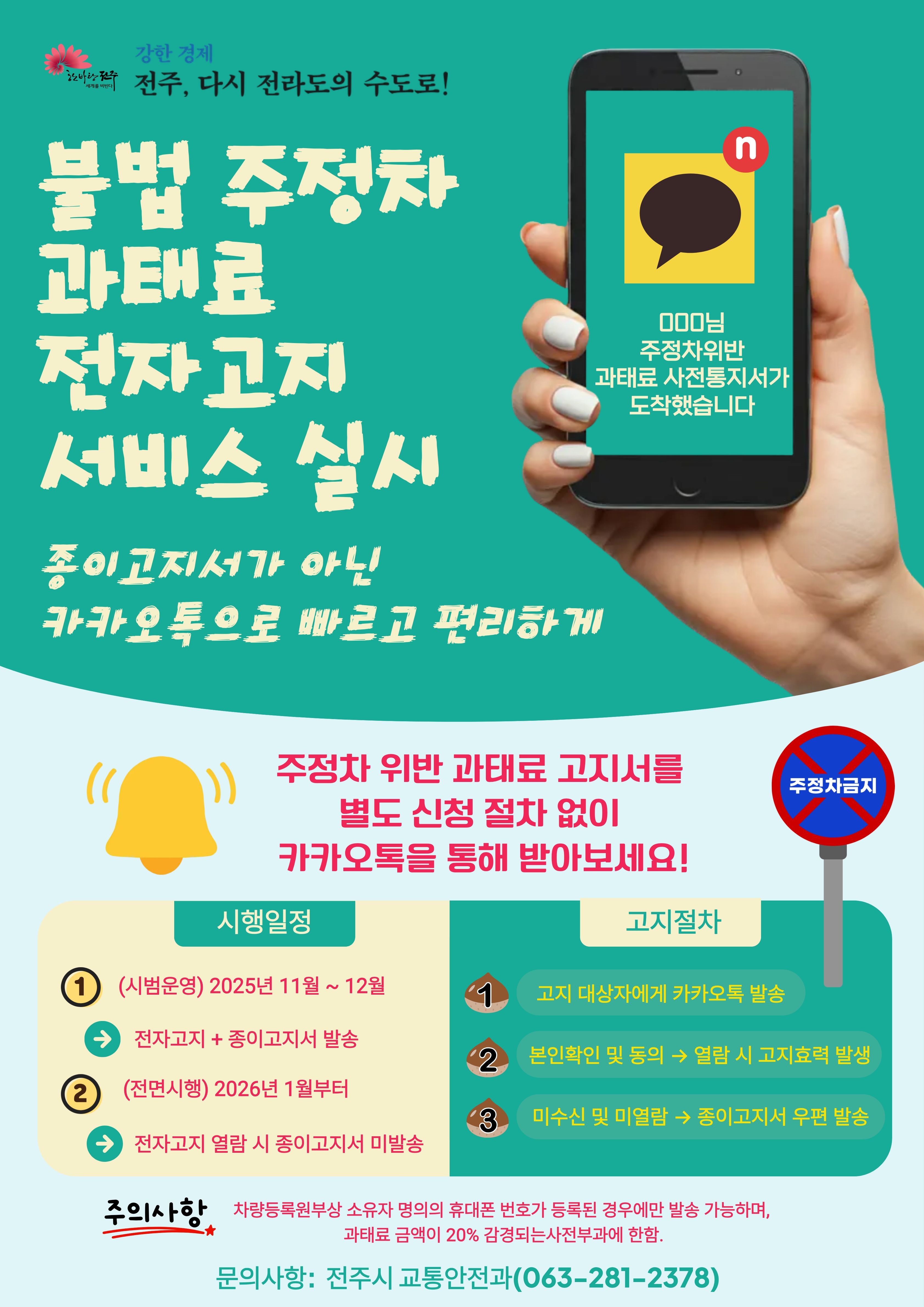 전주시, 주정차 과태료 전자고지 서비스 개시