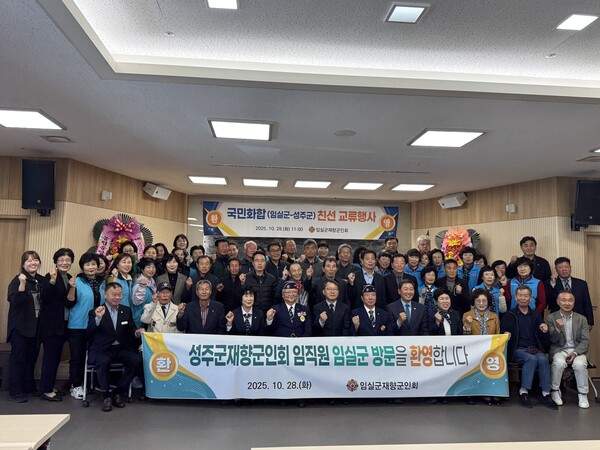 [임실=뉴전북] 전북 임실군 재향군인회(회장 김영석)가 지난 28일 임실농협 대회의실에서 경북 성주군 재향군인회를 초청해 국민 화합 영호남 교류 행사를 개최했다.