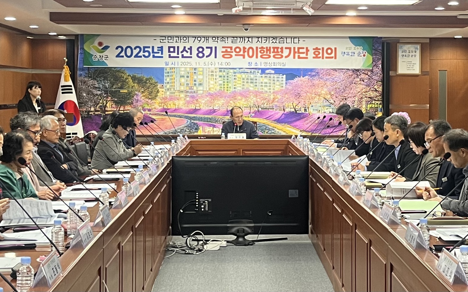 회의를 주재한 양주철 공약이행평가단장은 “민선 8기 순창군 공약사업의 완성도 높은 마무리를 위해 헌신해 주신 모든 관계자께 감사드린다”면서, “앞으로도 군민의 눈높이에서 따뜻하면서도 날카로운 시각으로 순창군을 향한 관심을 놓지 않고 지켜보겠다”라고 말했다.
