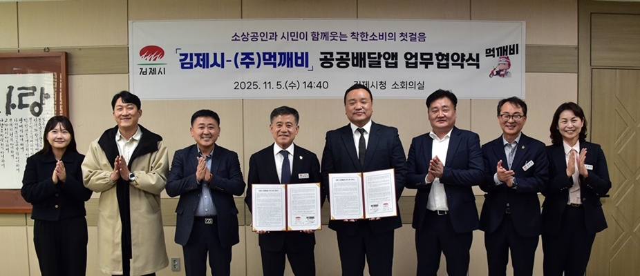김제시(시장 정성주)는 5일 소상공인의 수수료 부담을 줄이고 지역 내 소비를 촉진하기 위해 먹깨비와 민관협력형 공공배달앱 운영을 위한 업무협약을 체결했다고 밝혔다.