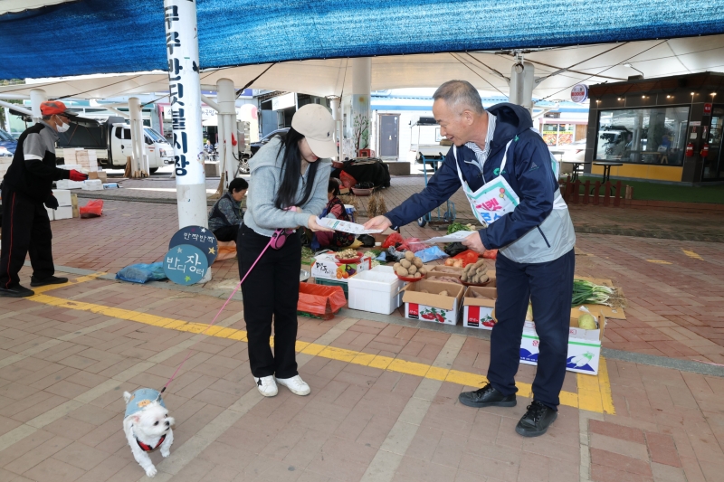 무주군이 6일 무주읍 반딧불시장에서 관련 공무원 등 20여 명이 동참 한 가운데 ‘펫티켓 캠페인’을 진행했다.
