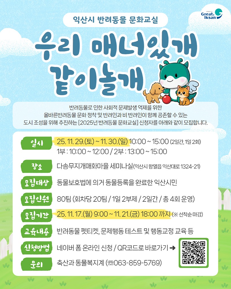 [익산=뉴전북] 익산시가 올바른 반려동물 문화 확산을 위한 교육의 장을 연다.