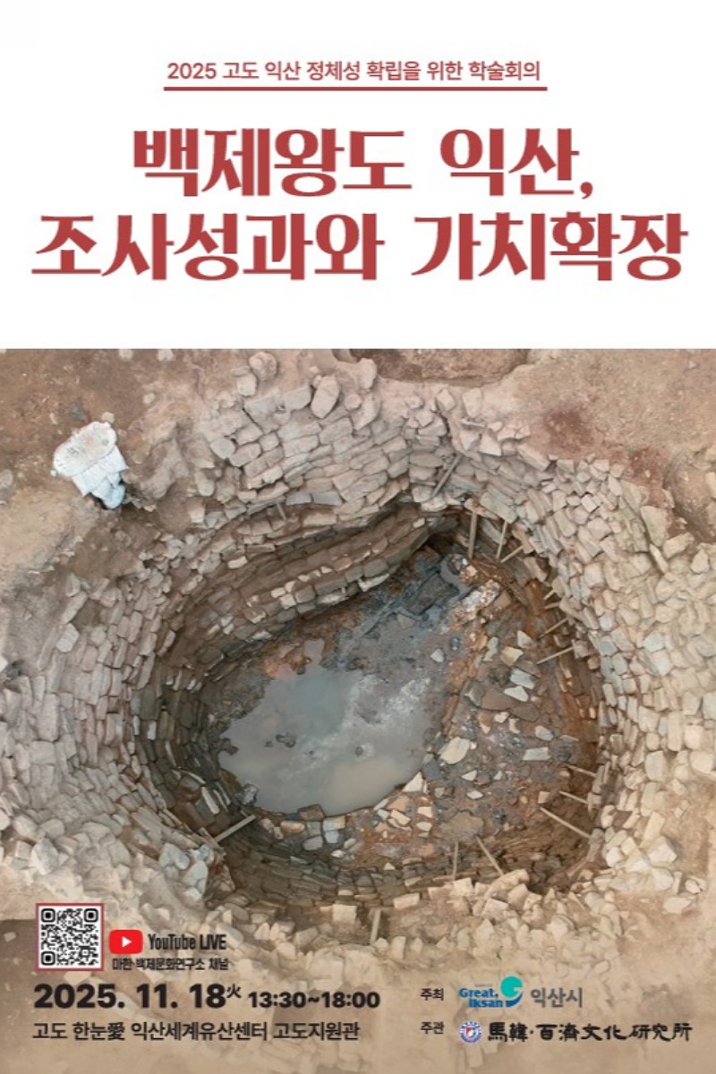 주제발표는 ▲익산 왕궁리유적 조사 신자료 '유구와 유물'(전용호, 국가유산청) ▲익산 미륵산성 평탄지 내 유적 조사성과와 의의(곽스도, 전북문화유산연구원) ▲백제 산성의 용수체계 연구(이문형, 원광대학교 마한백제문화연구소) ▲세계유산 등재 10년, 백제왕도 익산의 가치 확장을 위한 과제(김낙중, 전북대학교) 등 최근 발굴조사 성과와 향후 과제를 중점적으로 다룬다.