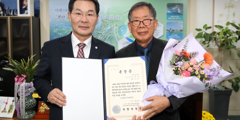 [부안=뉴전북] 부안군(군수 권익현)은 18일 한국전쟁 참전유공자인 고(故) 이만석 대위의 자녀 이해홍(71)씨에게 화랑무공훈장을 전수했다.