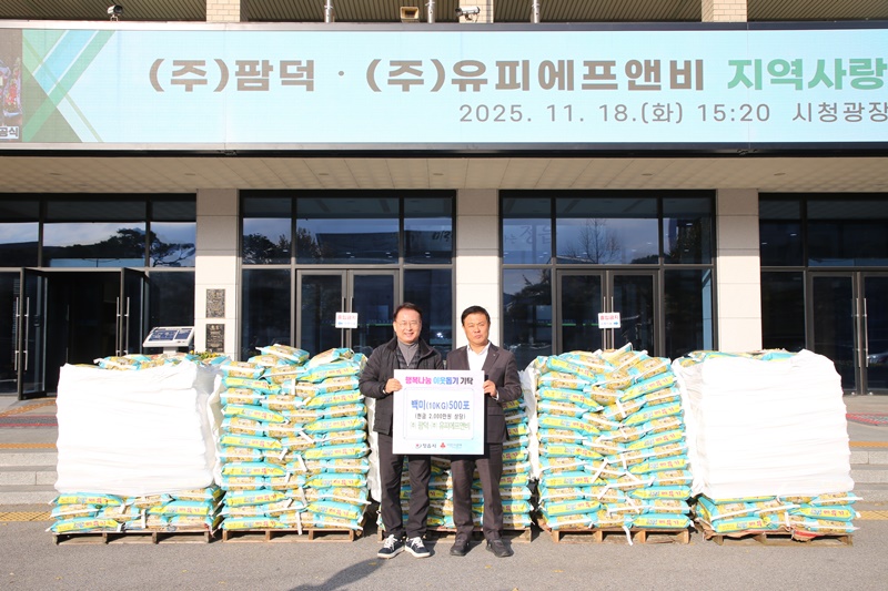 이학수 시장은 “지속적인 나눔을 실천해 주시는 ㈜팜덕·㈜유피에프앤비에 깊은 감사를 드린다”면서 “기탁받은 백미는 도움이 절실한 대상자들에게 신속하고 투명하게 전달될 수 있도록 최선을 다하겠다”고 화답했다.