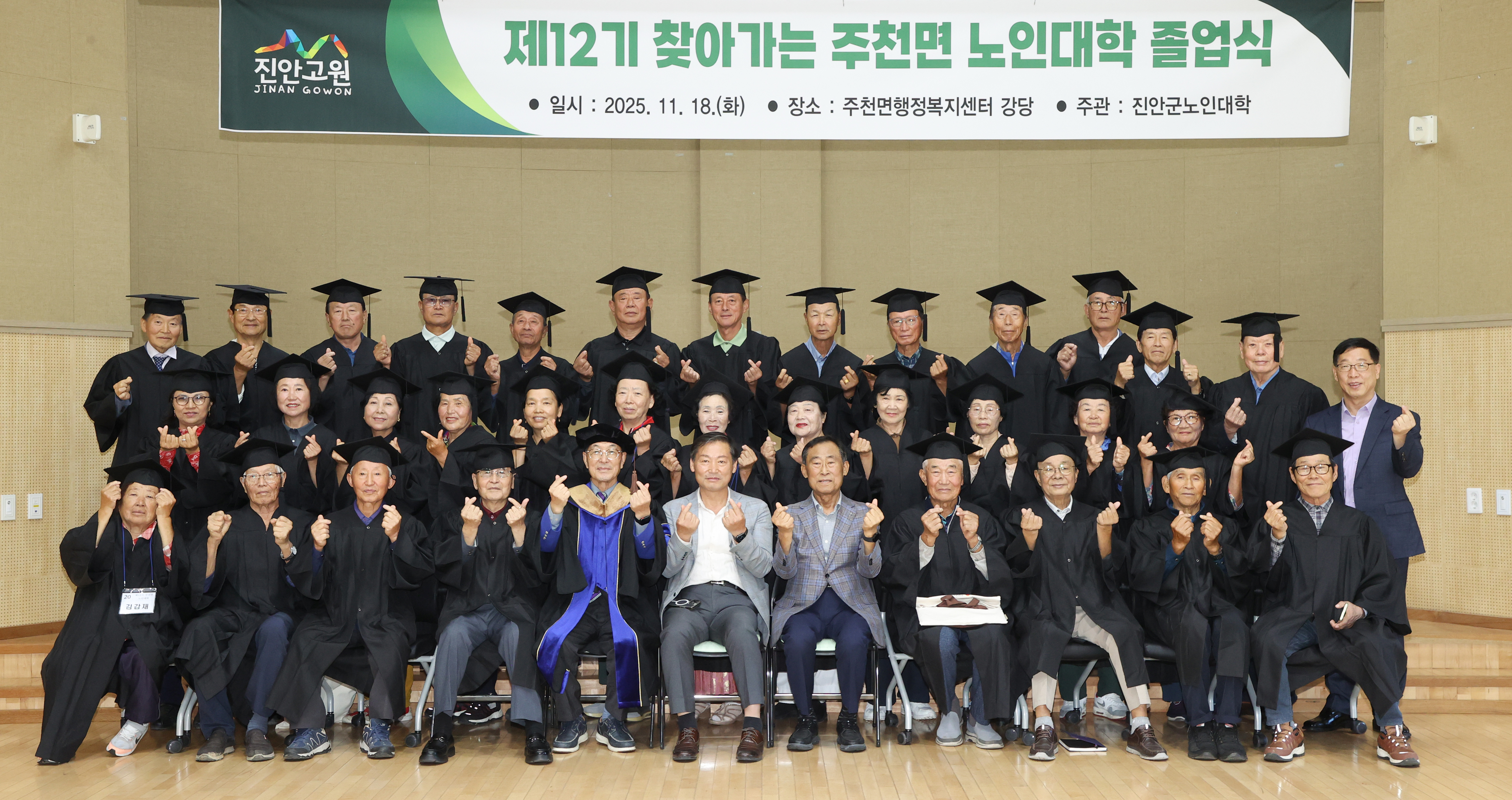 전춘성 진안군수는 축사에서 “바쁜 농사철과 일상 속에서도 꾸준히 참여해 오늘 졸업의 결실을 맺으신 어르신들께 진심으로 축하드린다”며 “앞으로도 어르신들이 더 건강하고 활기찬 노년을 보내실 수 있도록 다양한 복지사업을 적극 확대해 나가겠다”고 말했다.