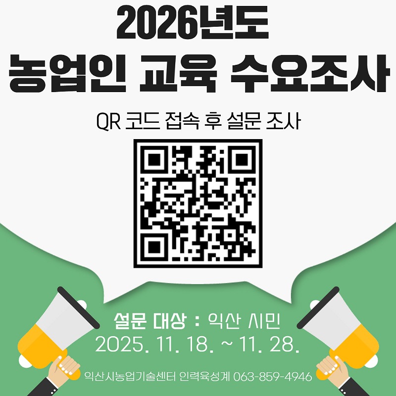 [익산=뉴전북] 익산시가 농업인의 실제 필요를 교육 정책에 반영하기 위해 '2026년도 농업인 교육 수요 조사'를 시작했다.