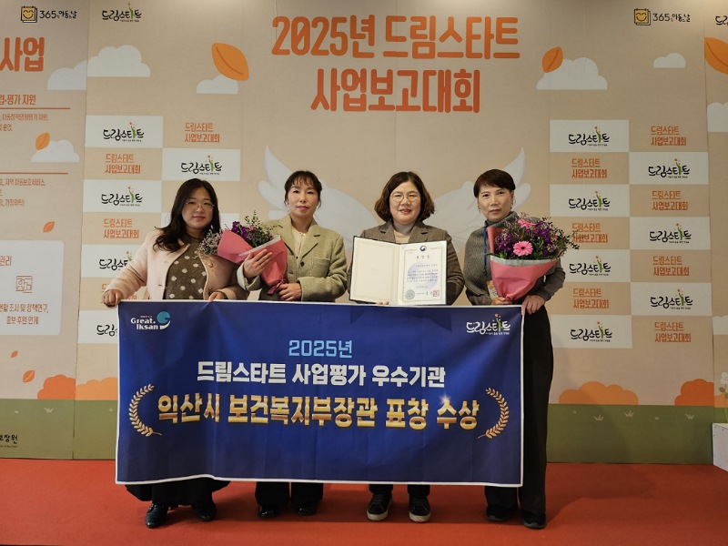 익산시는 20일 열린 '2025년 드림스타트 사업보고대회'에서 보건복지부 장관 표창을 받았다.