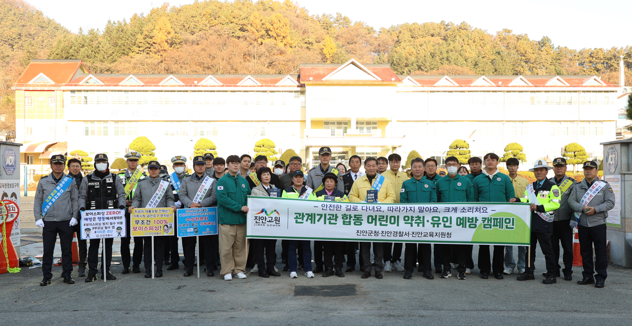 [진안=뉴전북] 진안군은 21일 진안초등학교 일원에서 진안경찰서, 진안교육지원청 등과 함께 어린이 약취·유인 예방 합동 캠페인을 실시하였다이번 캠페인은 최근 전국적으로 발생하는 어린이 유괴 시도 사건을 예방하고 유괴 범죄에 대한 경각심을 높이고자 진안군수, 진안경찰서장, 진안교육지원청 교육장 등 70여 명이 참여한 가운데,