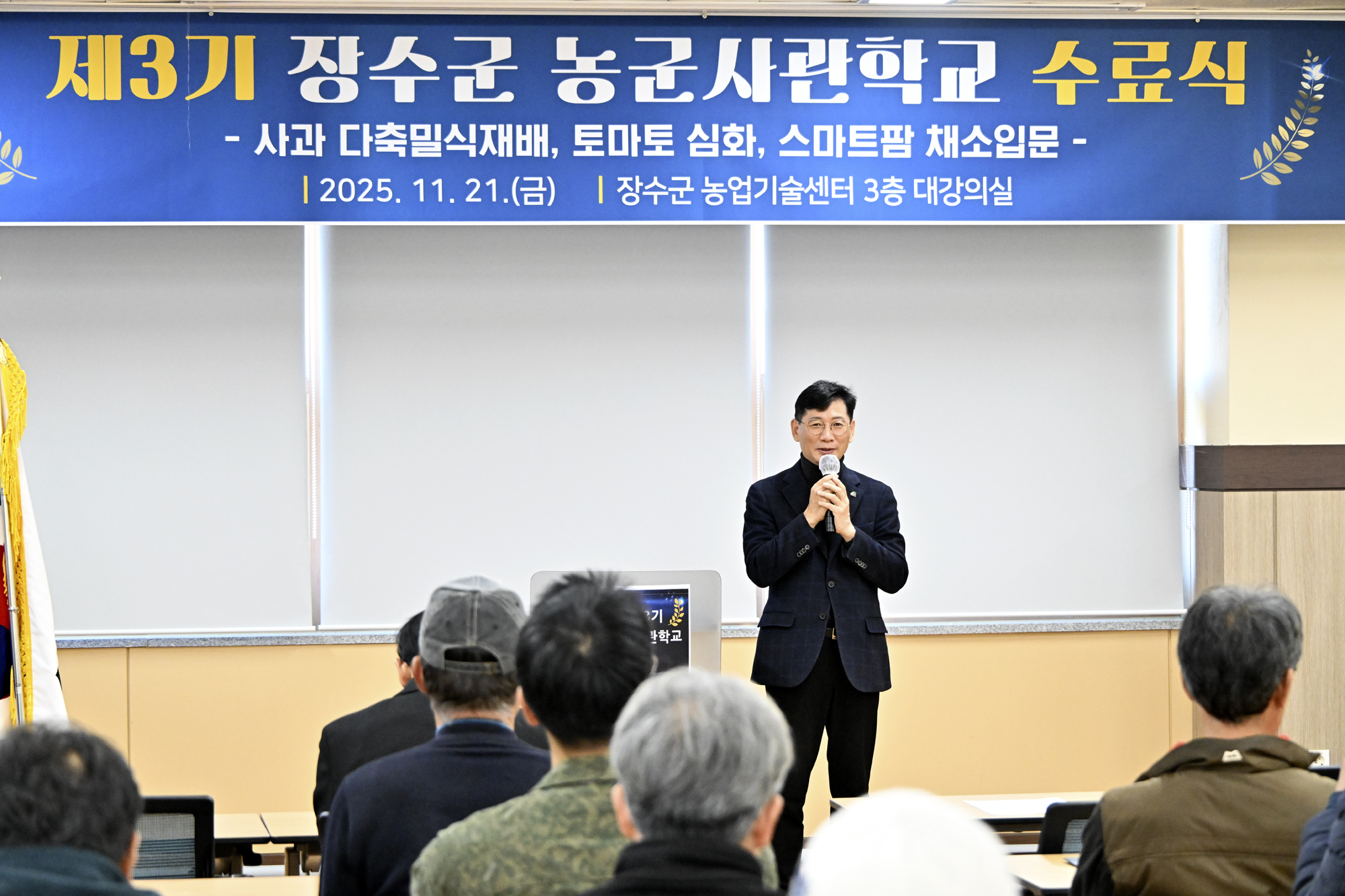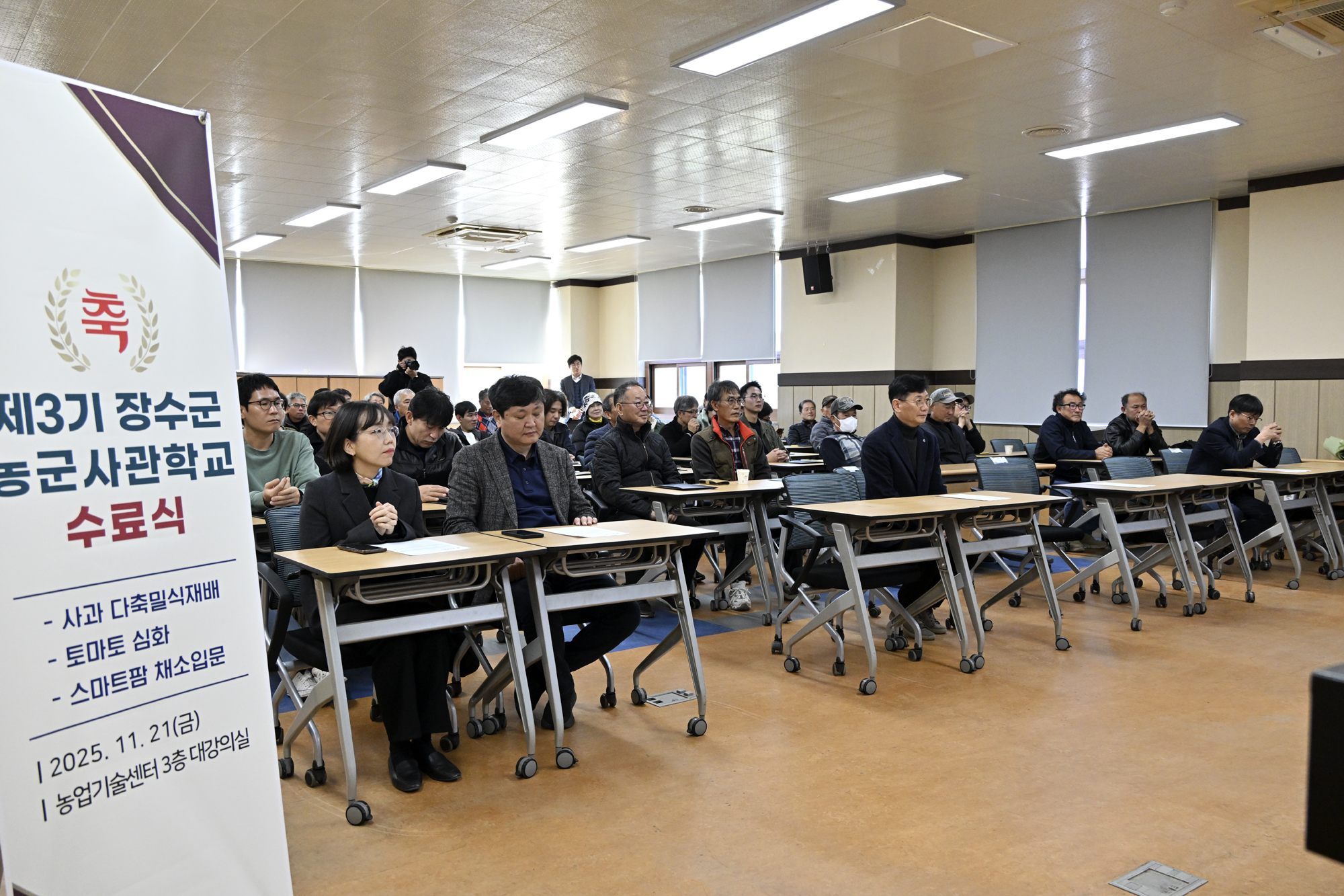 [장수=뉴전북] 장수군은 농업기술센터 대강의실에서 미래 농업을 선도할 전문 인력 양성을 위한 ‘농군사관학교 3기 수료식’을 21일 성황리에 개최했다고 밝혔다.