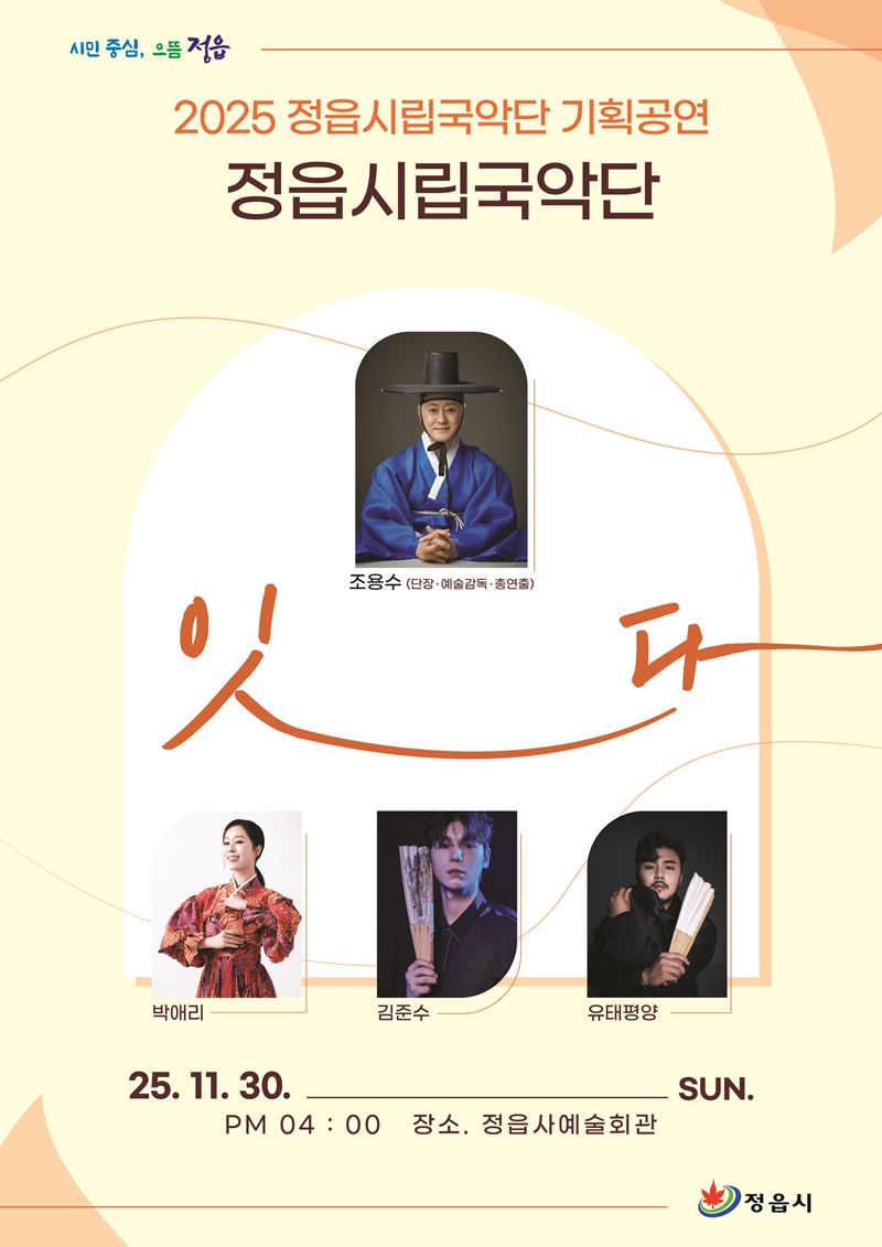 기획공연 ‘잇다’는 제목 그대로 전통과 현대, 예술과 시민, 지역과 미래를 하나로 잇는다는 의미를 담고 있다. 이번 무대에는 정읍시립국악단 소속 창극부, 연주부, 무용부 단원 전원이 참여해 웅장하고 다채로운 예술적 역량을 뽐낸다.