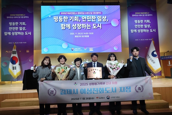 이번 지정심사를 통과한 김제는 지난 26일 서울 중구 페럼타워에서 ‘2026년 여성친화도시 지정 지자체 협약식에 참석해 성평등가족부와 협약을 체결했다. 이날 협약식에는 김회옥 부시장을 비롯한 시 관계자들이 참석해 성평등가족부와 상호 협력을 약속하고, 여성친화도시 5대 목표 실현 의지를 밝혔다.