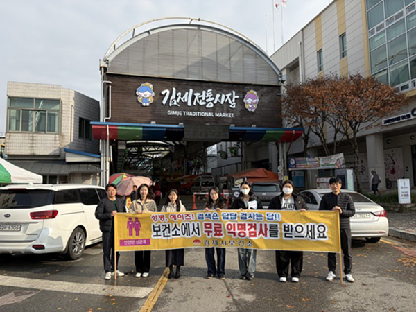 [김제=뉴전북]김제시는 지난달 27일 “제38회 세계 에이즈의 날(12월 1일)”을 맞아 보건소 앞 전통시장에서 시민을 대상으로 세계 에이즈의 날 현장 캠페인을 전개했다고 밝혔다.