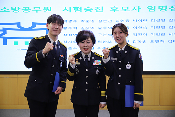 이날 임용식에는 선후배와 동료들이 참석해 승진자들의 새 출발을 축하했다. 임용장은 이오숙 전북특별자치도소방본부장이 직접 수여했다.