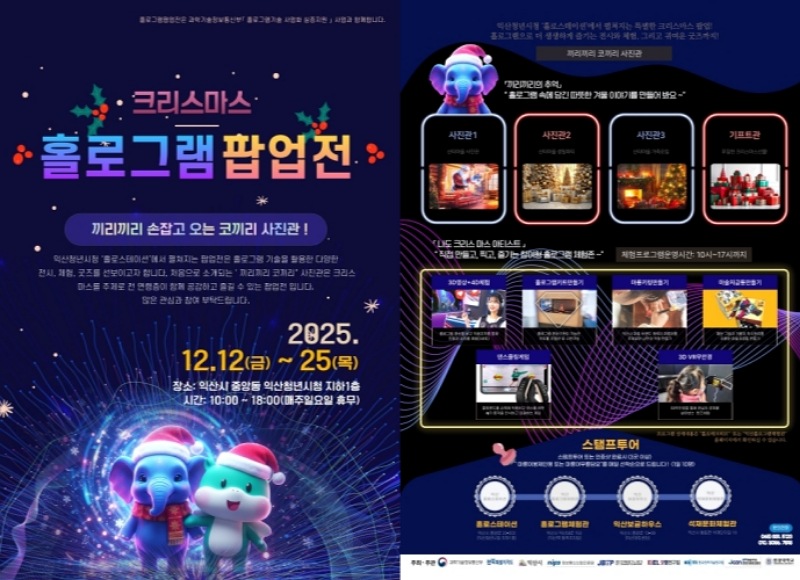시는 오는 12~25일 익산청년시청에 조성된 홀로그램 쇼룸 '홀로스테이션'에서 '2025 크리스마스 홀로그램 팝업전'을 운영한다.