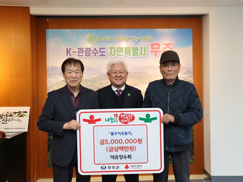 [사회=뉴전북] 무주군민으로 구성된 친목회 ‘덕수장수회’가 지난 11일 이웃돕기 성금 300만 원을 기탁했다.