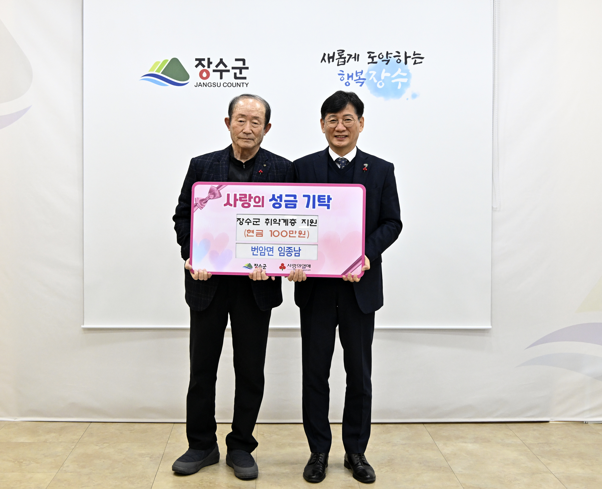 [장수=뉴전북] 장수군은 번암면에서 개인택시를 운영하고 있는 임종남 씨가 연말을 앞두고 이웃돕기 성금 100만원을 군에 기탁했다고 26일 밝혔다.