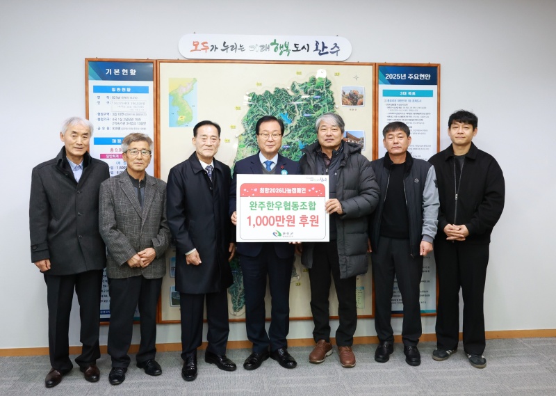 이번 성금은 희망2026 나눔사업의 일환으로 마련됐으며, 완주한우협동조합은 지난 2015년부터 고산면 미소시장 내 한우 판매장과 식당 운영을 통해 발생한 수익금을 지역사회에 꾸준히 환원해 오고 있다.