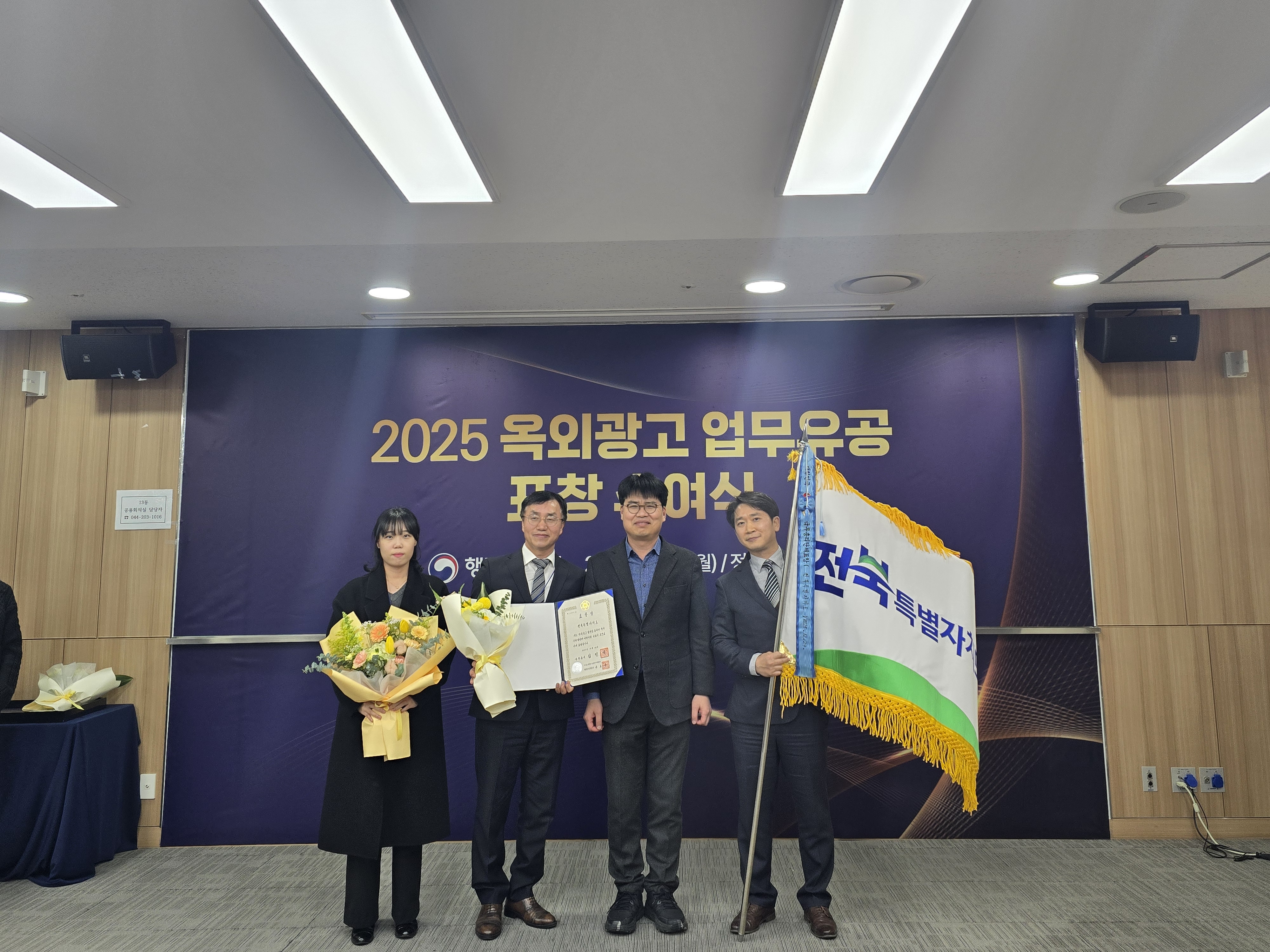 [도정=뉴전북] 전북특별자치도가 행정안전부가 주관한 ‘2025년 옥외광고 정책 평가에서 전국 광역자치단체 가운데 최고 등급인 국무총리 표창을 수상했다고 29일 밝혔다.