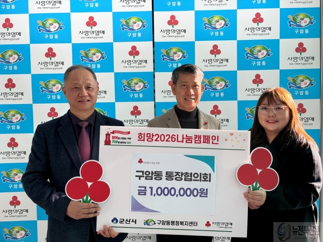 [사회=뉴전북] 군산시 구암동 통장협의회가 작년에 이어 올해에도 구암동 복지 허브화 기금으로 100만 원을 기탁하며 꾸준한 나눔을 실천했다.