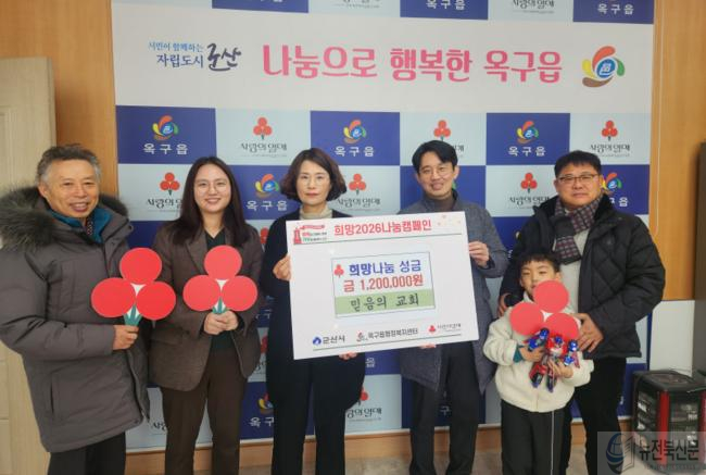 손수경 옥구읍장은 “해마다 변함없는 나눔을 실천해 주시는 믿음의 교회에 깊이 감사드린다”며 “기탁된 성금은 관내 취약계층을 위한 맞춤형 복지서비스 지원에 소중히 사용하겠다”고 전했다.