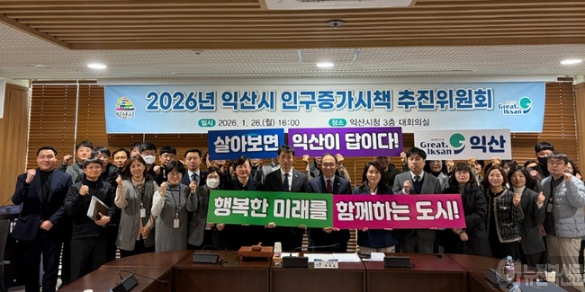 익산시는 26일 시청 대회의실에서 '인구증가시책 추진위원회'를 열고, 2026년 인구정책 추진계획을 심의·의결했다.