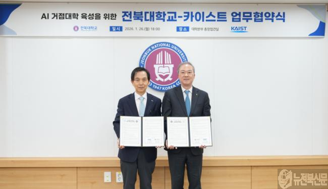 [교육=뉴전북] 전북대학교(총장 양오봉)가 정부의 AI 거점대학 육성 정책에 적극 대응하기 위해 카이스트(총장 이광형)와 손잡고 AI 교육·연구 역량 강화에 나선다.
