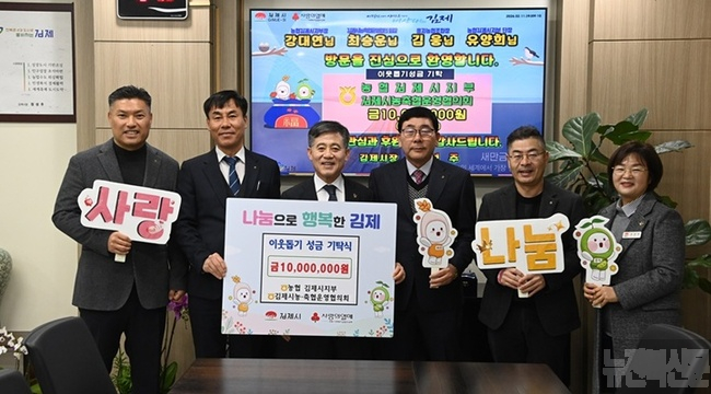 정성주 김제시장은 “지역 농업과 시민을 위해 늘 함께해 온 농협 김제시지부와 김제시농·축협운영협의회의 뜻깊은 나눔에 감사드린다”며 “기탁해 주신 성금은 관내 저소득계층과 사회복지시설에 소중히 전달하겠다”고 말했다.