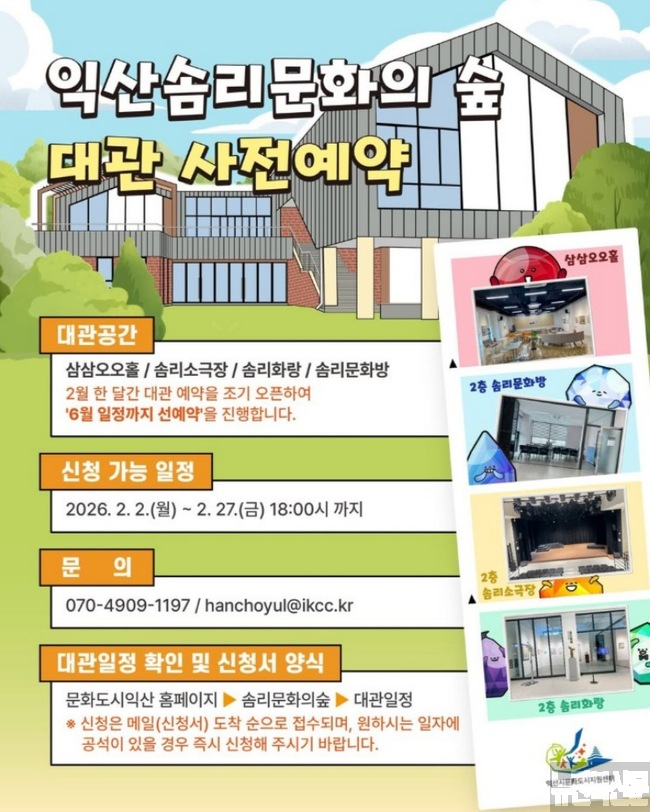 익산솜리문화의 숲, 상반기 대관 접수