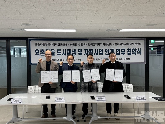 [김제=뉴전북]김제시는 지난 11일 전북김제지역자활센터 2층 회의실에서 요촌마을 도시재생과 자활사업의 연계를 위한 4개 기관의 업무협약(MOU)을 체결했다고 밝혔다.