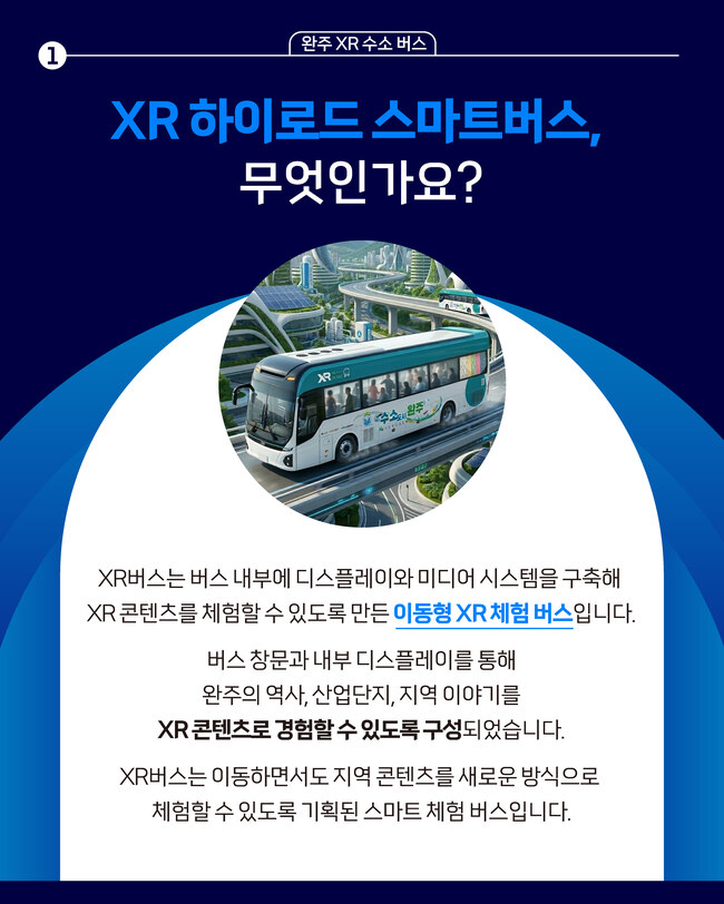 [문화=뉴전북] 완주문화재단(이사장 유희태)은 오는 3월 21일, 완주 산단 일대에서 차세대 실감형 콘텐츠 거점인 완주 XR 하이로드 스마트버스 시승식 및 시운행을 개최한다고 밝혔다.