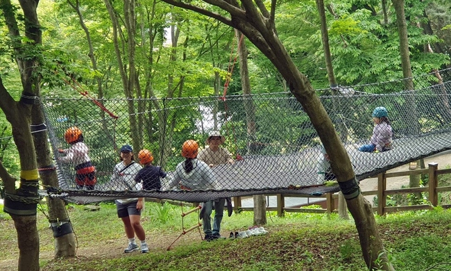나무놀이숲은 아동의 신체 발달을 돕기 위해 조성된 맞춤형 산림 공간이다. 이곳에서는 전문 강사의 지도 아래 트리클라이밍과 버마다리, 짚라인 등 나무와 로프를 활용한 산림 체험이 진행된다. 또한 실생활에 활용 가능한 밧줄 매듭법 교육을 병행해 아동들의 위기 대처 능력 향상을 돕는다.